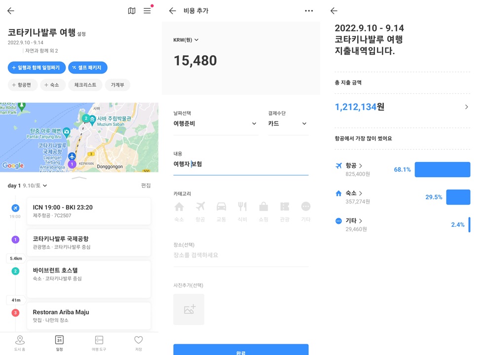 | 여행자 보험 | 15,480 | 트리플 연계 마이뱅크 보험 (코로나 보장보험 포함) |