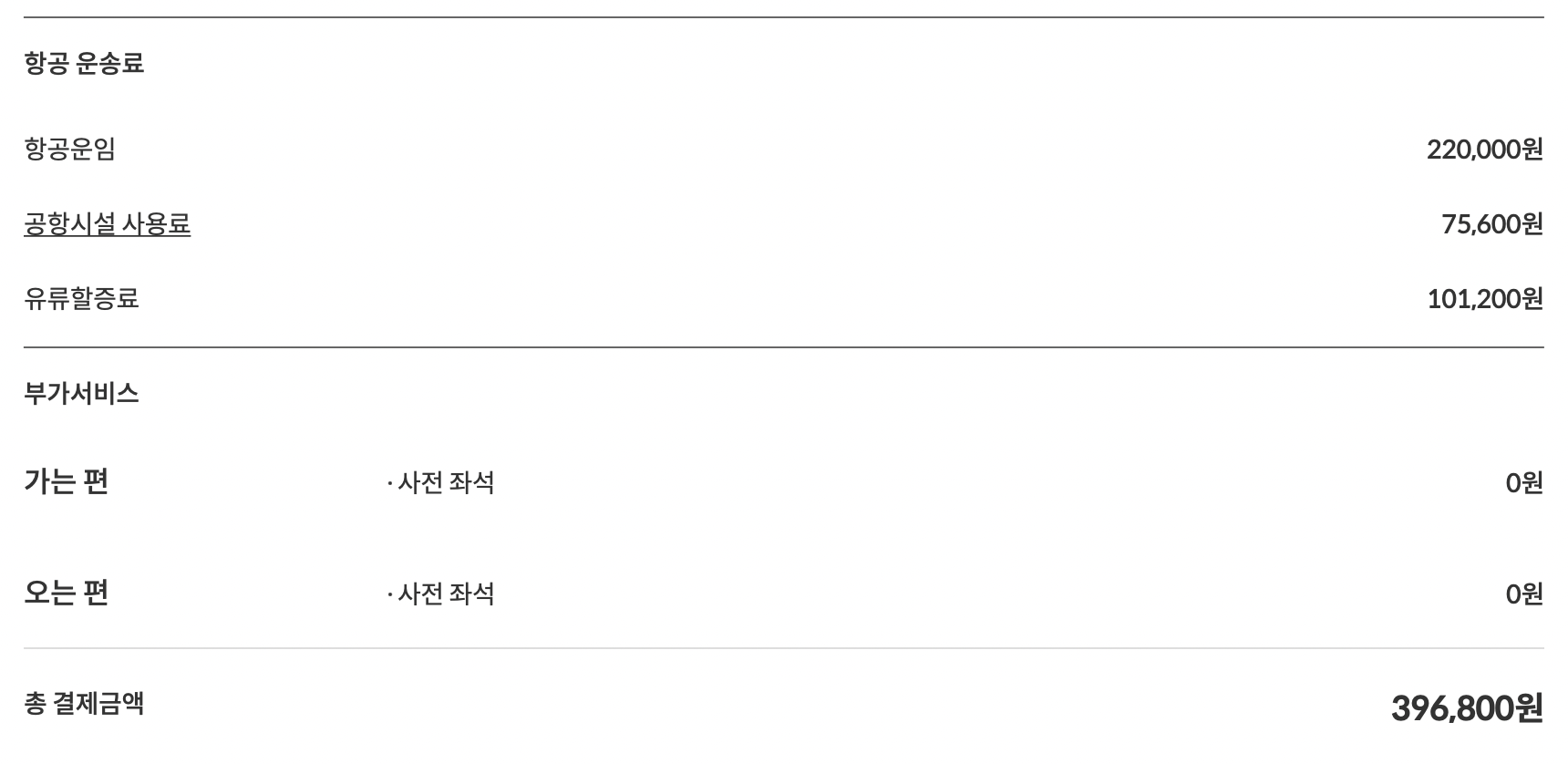 | 항공 | 396,800원 | 제주항공, 기내 수하물 15KG, 왕복 셔틀 무료 인당 198,400원 |