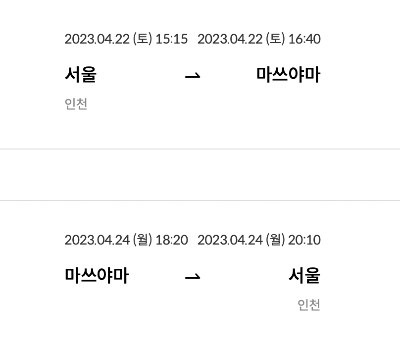 제주 항공에서 단독 취항하고 있고 에히메현과 제휴를 했는지 공항에서 마쓰야마 시내, 도고 온천까지 왕복을 셔틀로 지원을 해준다.