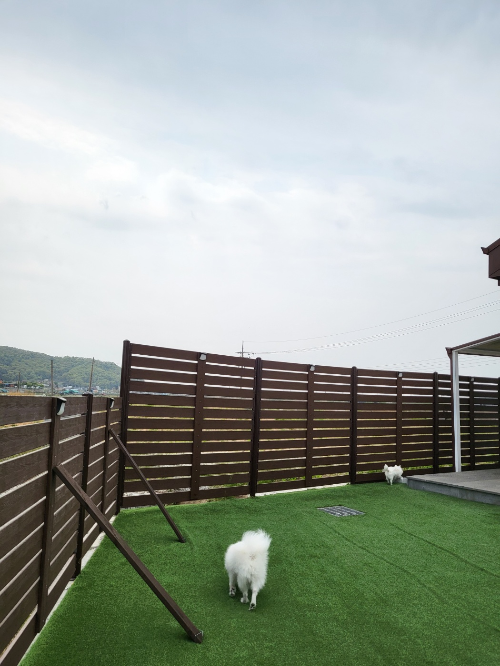 공용 마당은 같이 사용할 수도 있지만 방구석 여포인 우리 애들은 밖에 아무도 없을 때만 잠깐 나갔다 왔다.