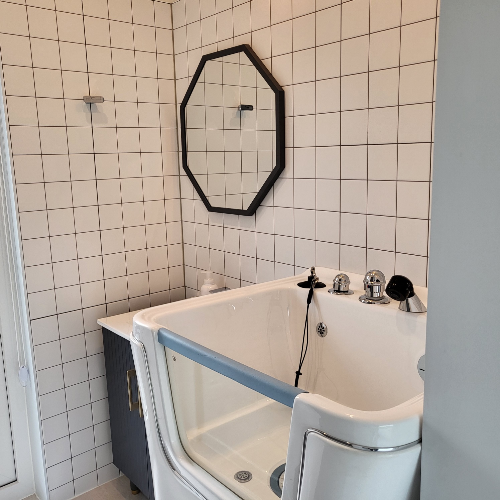 침대도 깔끔하고 일동 이외엔 내부 욕조가 없지만 강아지 욕조는 있다.