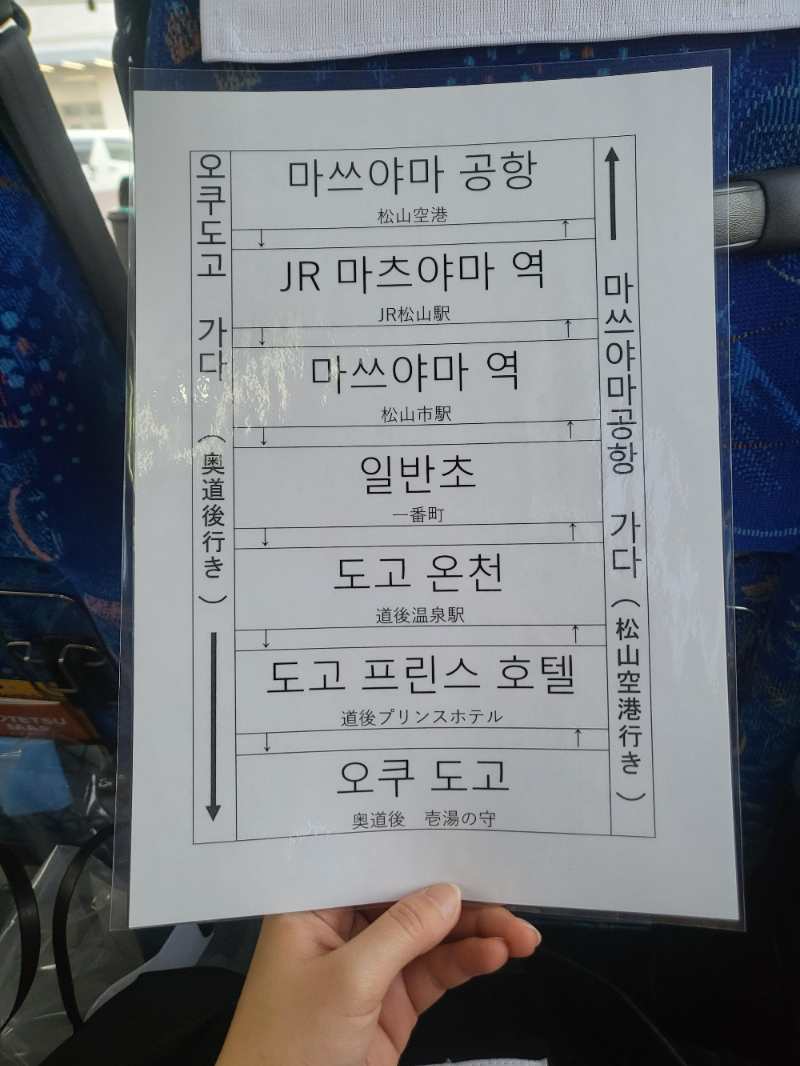마쓰야마 공항 - JR 마츠야마역 - 마츠야마역 - 일반초(이찌반초) - 도고온천 - 오쿠 도고 왕복이니 돌아올 때도 시간 맞춰서 탈 수 있다.
