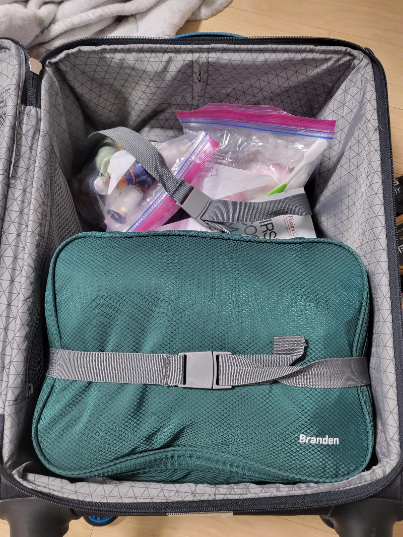 압축돼서 무겁긴 하지만 저번에 산 압축팩 잘 쓰고 있는 중, 기내 반입 캐리어의 4분의 1 정도 찬다.