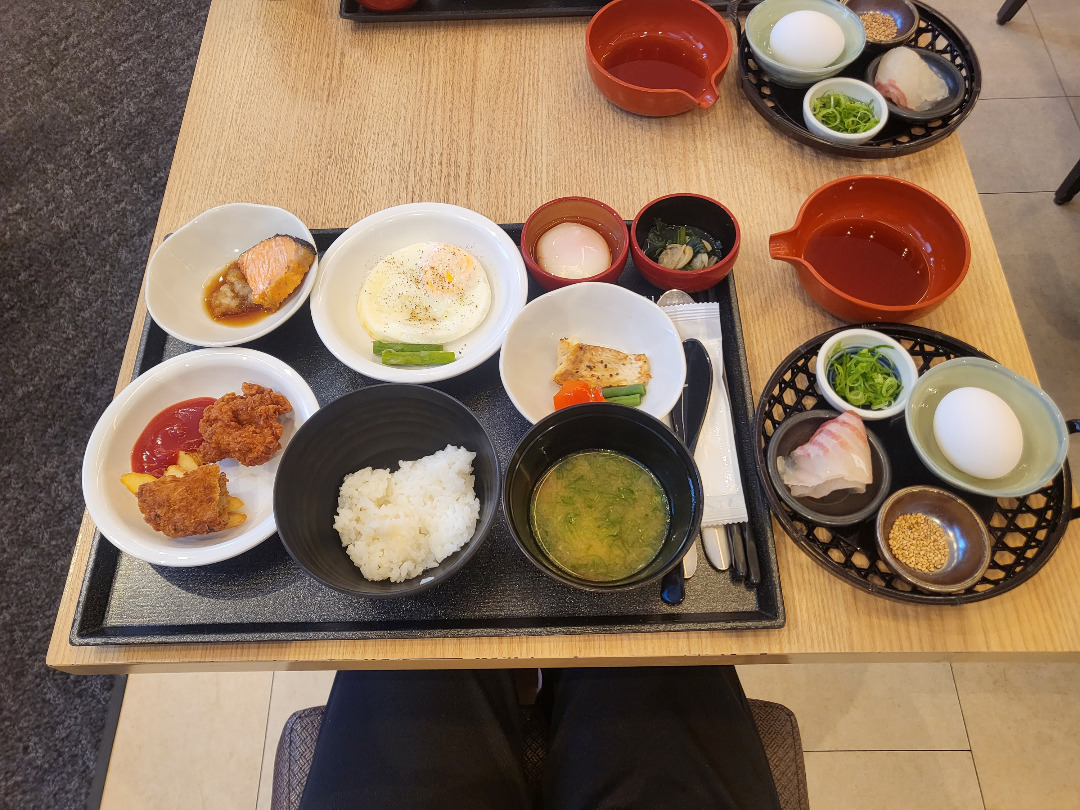 일어나서 어제 라멘을 먹었던 1층으로 가서 조식을 먹었다.