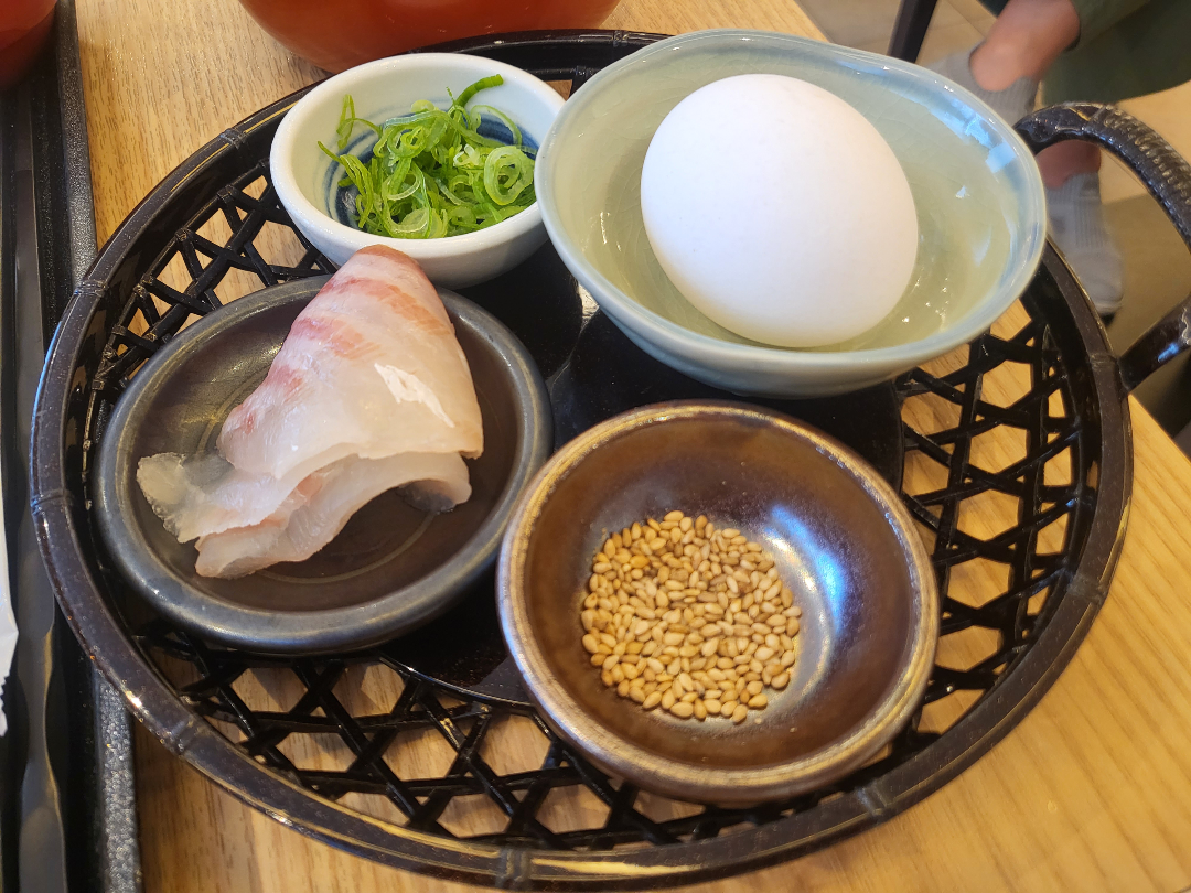 계란 프라이, 온센 타마고, 도미 덮밥 날계란 + 가라아게 치킨 몰살 한상.