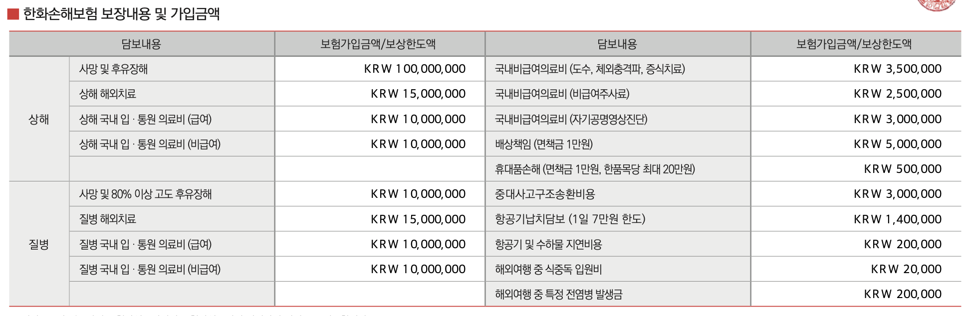 | 여행자보험 | 21,200원 | 어시스트카드 (한화손해보험) 30대..기준 인당 10,600원 |