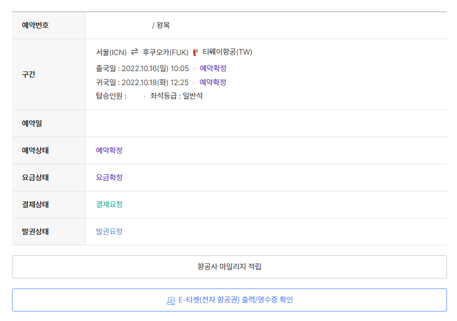 출국일 : 2022.10.16(일) 10:05