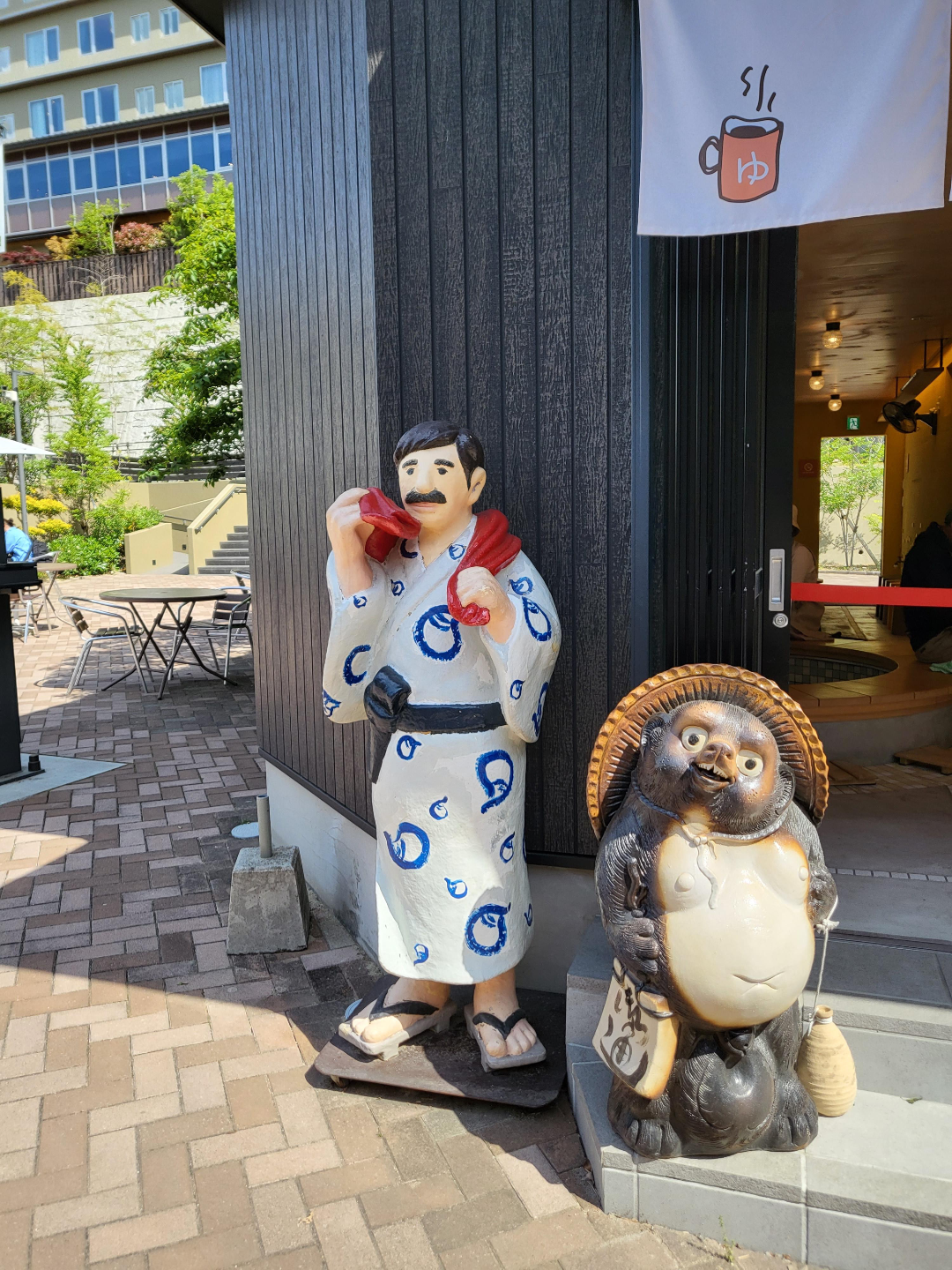 야외 노천탕은 상부가 다 가려져있고 야외 공기만 들어오는 형태라서 수건 없이 나가도 된다.