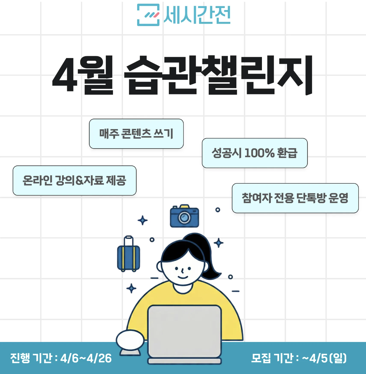 어필리에이트 중 하나인 세시간전에서 습관 챌린지를 하고있는데요,