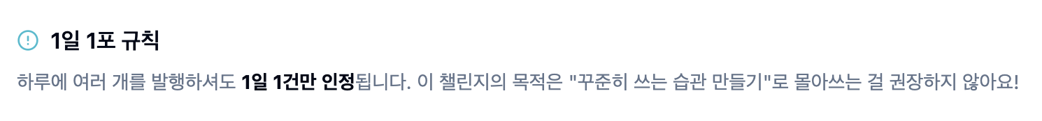 꾸준함이 목적이라 1일 30포 해도 1회밖에 인정 안됩니다. 저는 물론 1일 1포도 힘겨우니 1포 매일매일 헐레벌떡 따라가봅니다.